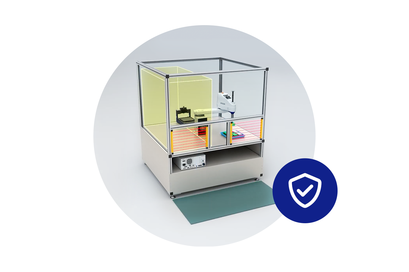 Epson’s safety functions allow the machine to keep running while operators perform their tasks. Operators can work in synchronisation with the machine by reducing risks through safe speed and position monitoring.